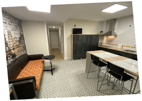 Espacios comunes amplios. Cocina compartida en cada planta.